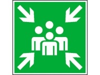 Tabulka "Shromaždiště" pro svislé umístění na únikových cestách. Materiál fotoluminiscenční fólie se samolepící vrstvou s dosvitem 2100 minut.